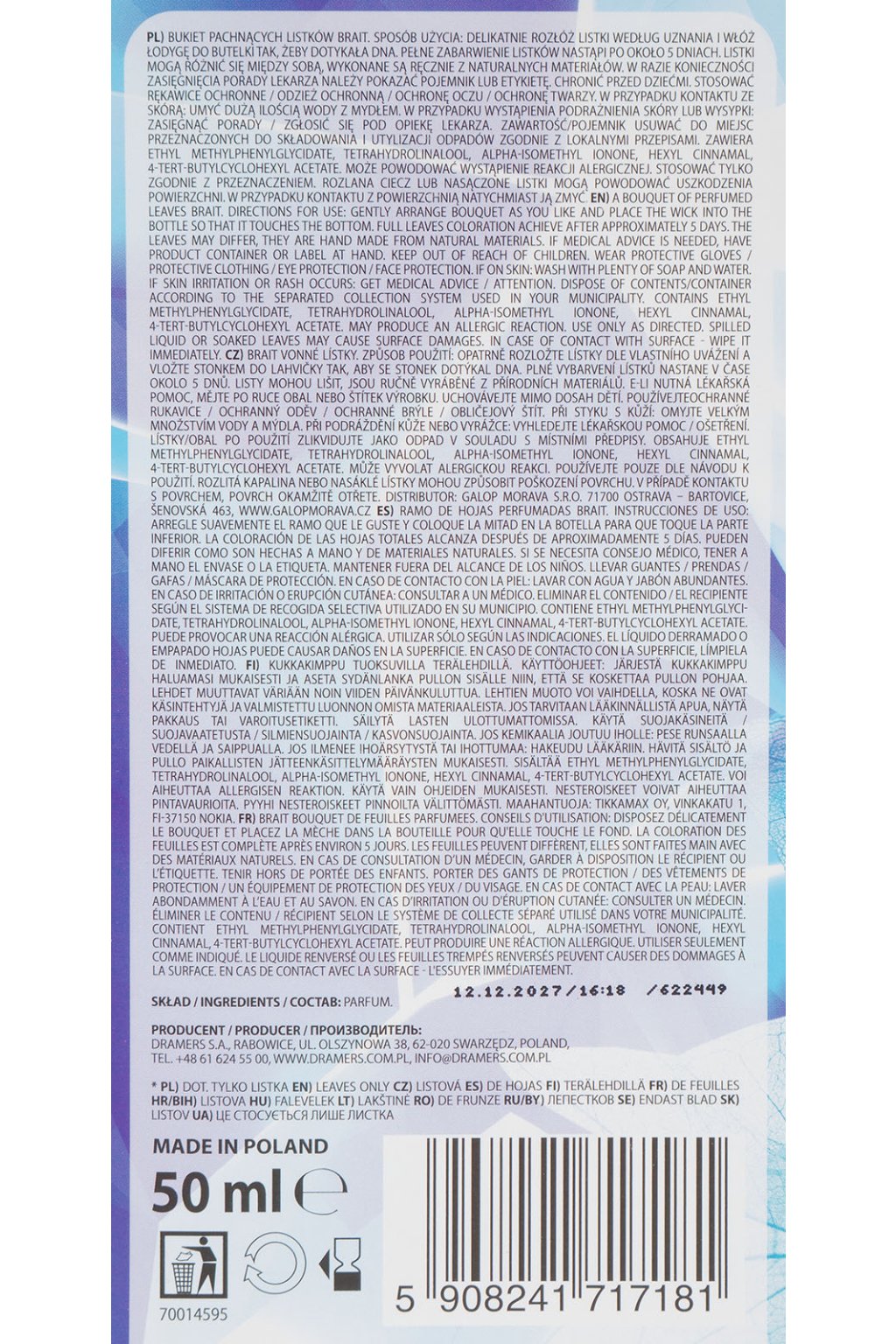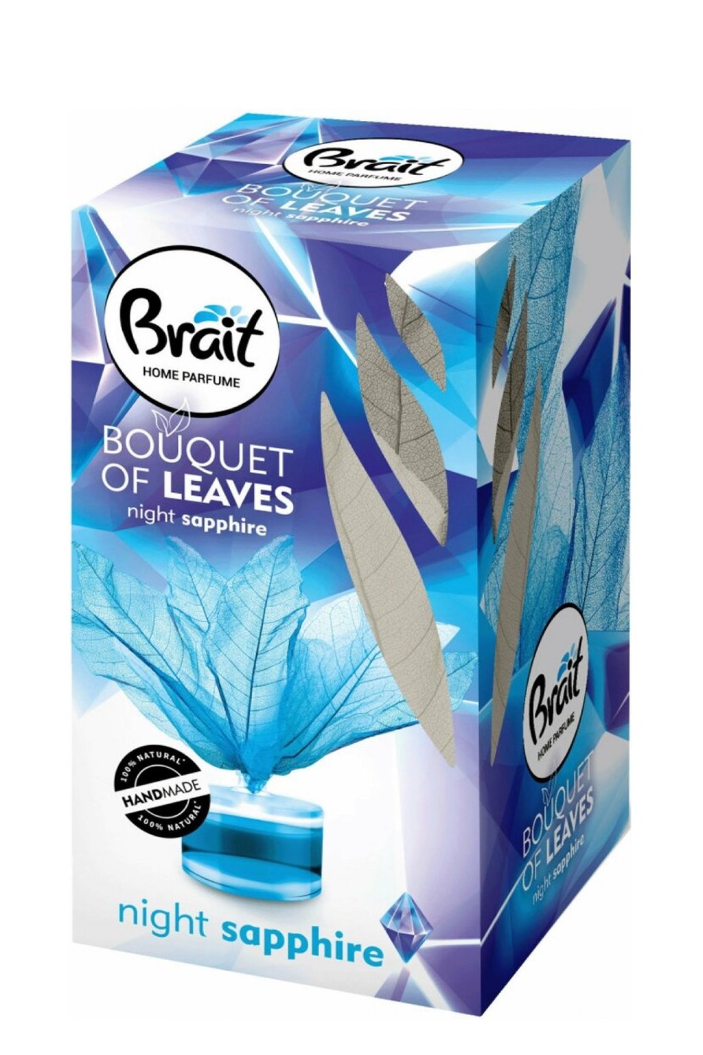 Brait Bouquet of Leaves – Night Sapphire je nejen osvěžovač vzduchu, ale i stylová dekorace vytvořená z ručně splétaných magnóliových lístků. Stačí vložit vonnou esenci do skleněné vázy a do ní zapíchnout lístky – během 2–3 dnů nasají aroma a poté pozvolna provoní celý prostor.
