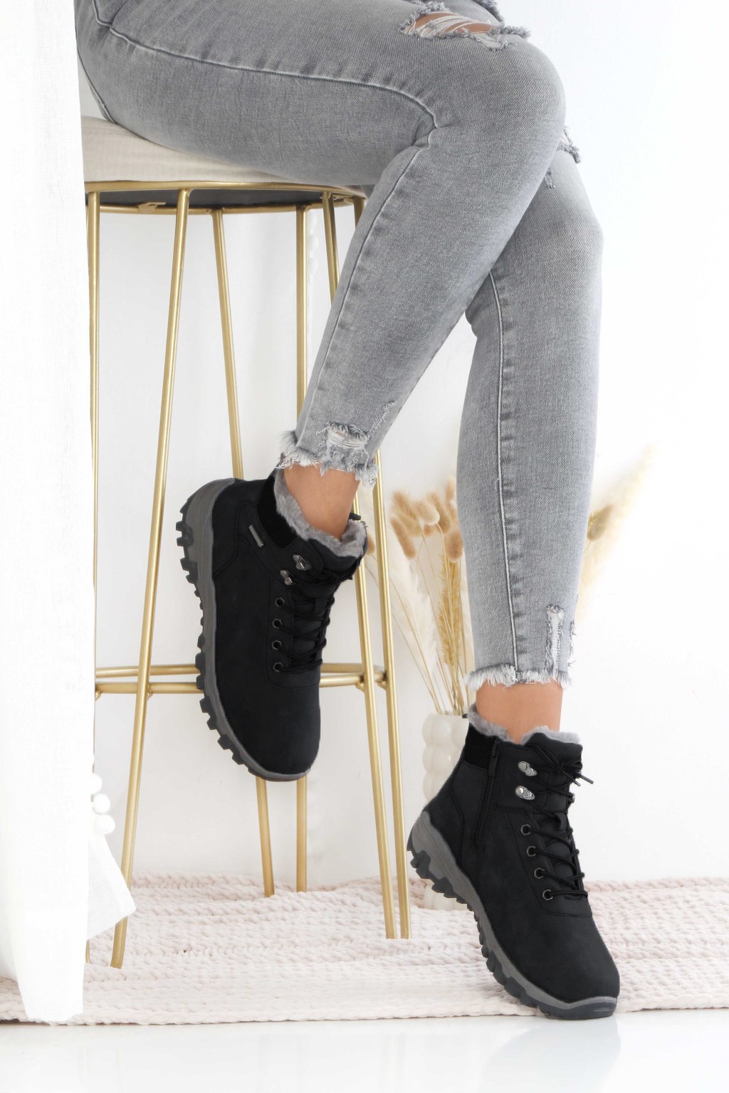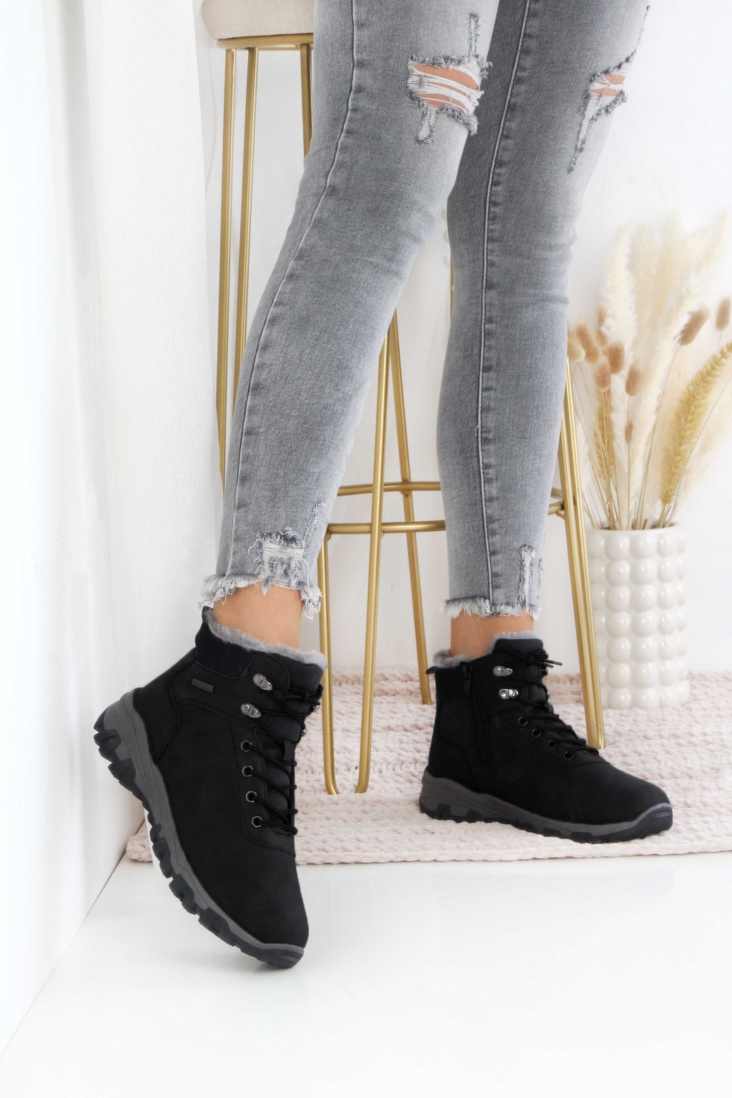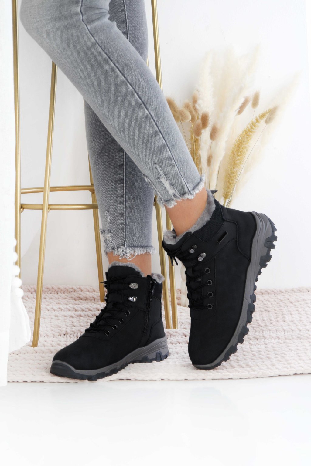 Objevte černé hřejivé dámské zimní boty, které perfektně zkombinují moderní design a maximální komfort. Teplá kožíšková podšívka, praktické šněrování a pevná protiskluzová podrážka zajistí bezpečný krok i v mrazivém počasí. Univerzální černá barva se snadno sladí s každým outfitem – od džínů až po sportovní kabáty. Ideální volba pro ženy, které hledají moderní zimní obuv, ve které se budou cítit komfortně.