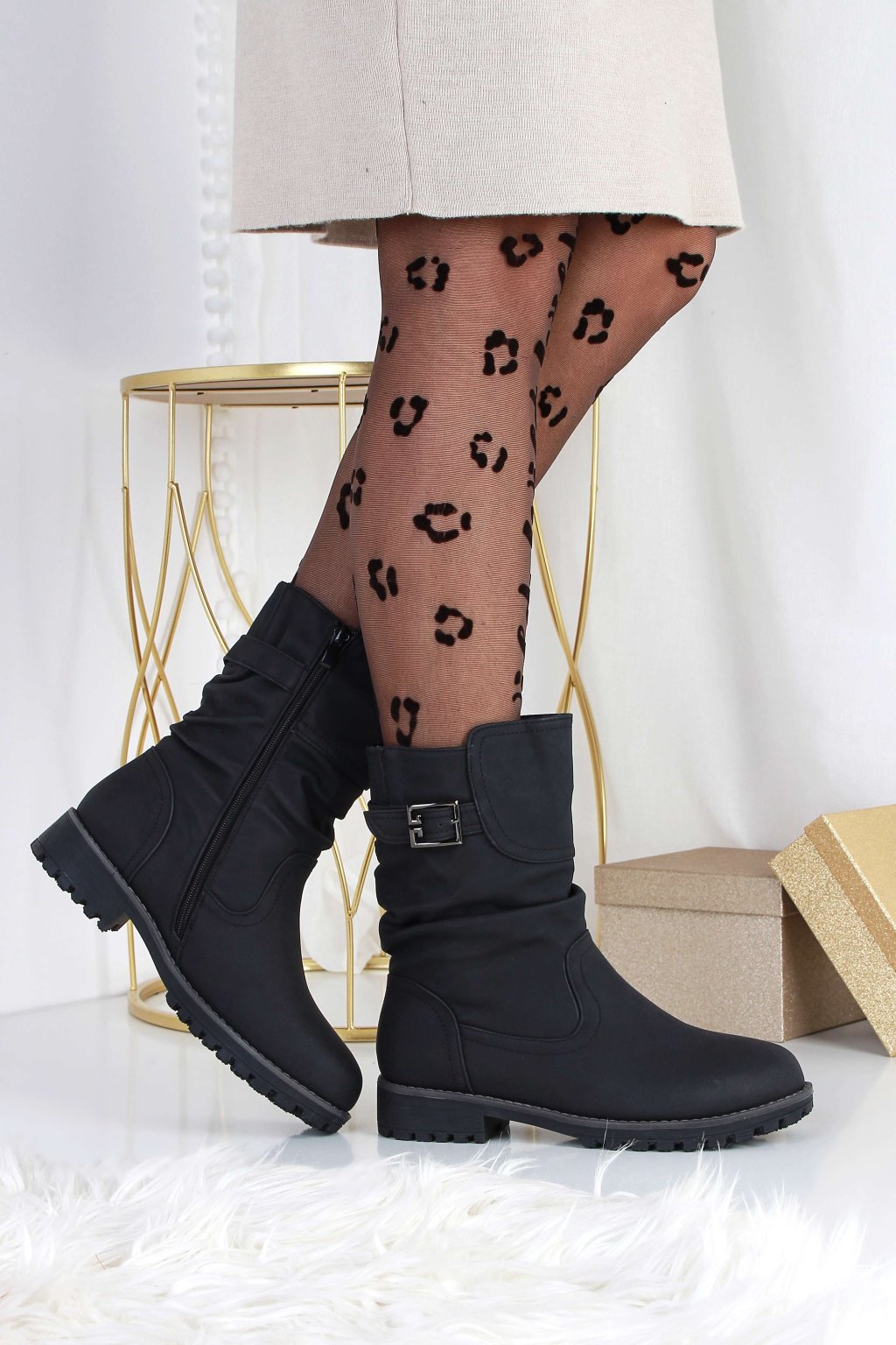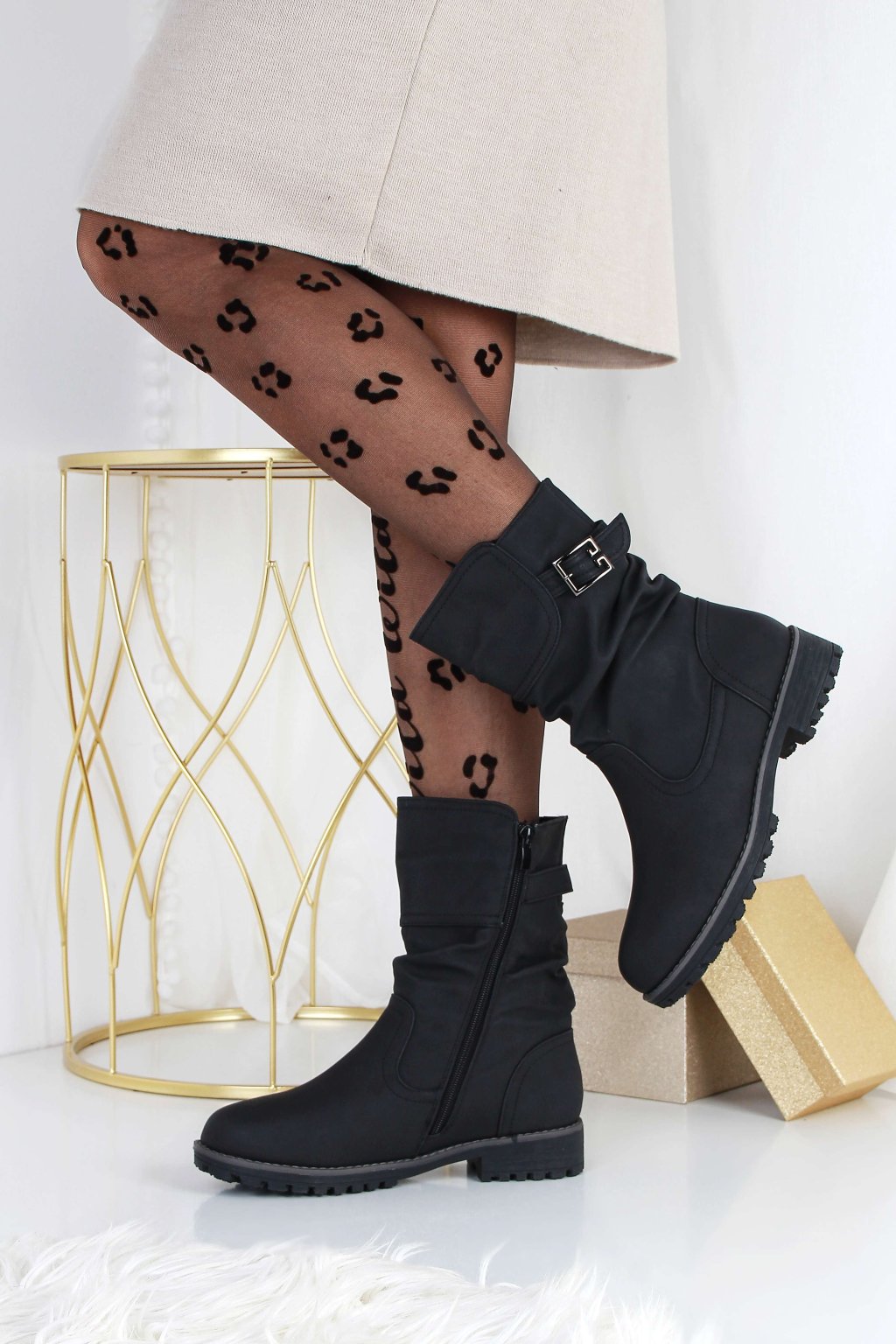 Dámské matné nízké kozačky GY54D-1B