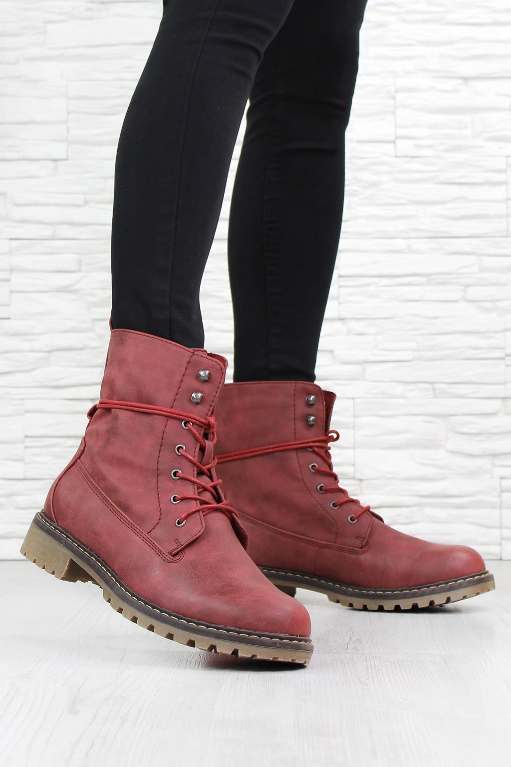 Perfektní kotníkové boty na chladné podzimní nebo jarní dny. Uvnitř vás zahřeje jemný a krátký kožíšek. Díky tkaničkám vám botky perfektně sednou. Tkaničky jsou u tohoto modelu dlouhé a moderně se obtáčejí okolo celé boty. Podrážka s výrazným vzorkem má plochý podpatek a tak si můžete být jistá, že vaše chůze bude jistá i na spadaném listí. Botky svou nadčasovostí a nevtíravým vzhledem se hodí k mnoha outfitům a můžete si být jistá, že si je rychle oblíbíte.