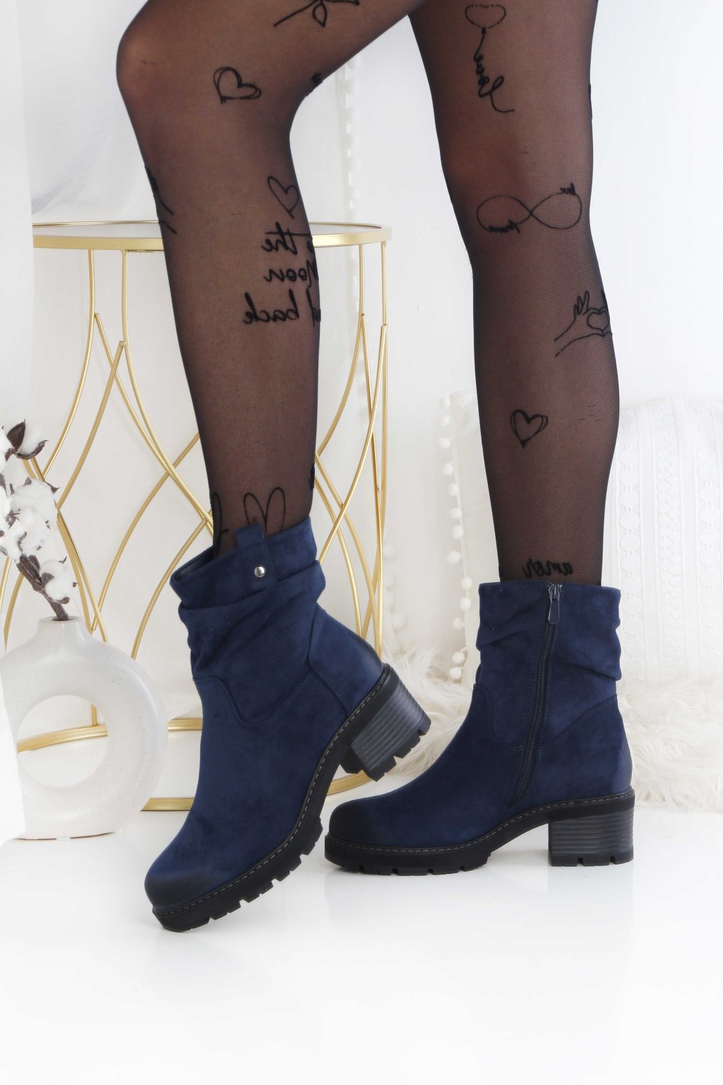 Semišové nízké kozačky 68103-3D.BL