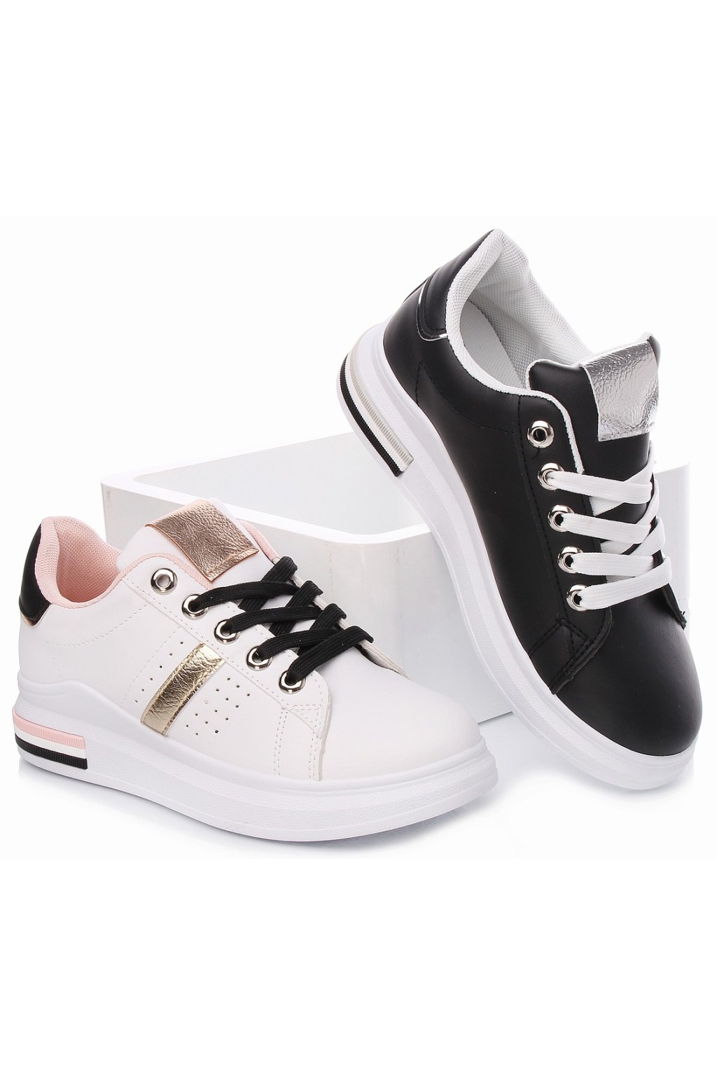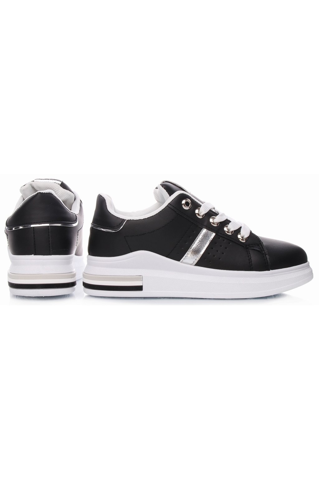 Moderní tenisky, které se hodí do městských ulic mají komfortní platformu díky které budou vaše nožky jako v bavlnce. Příjemná černobílá kombinace je ozvláštněna stříbrnou lesklou barvičkou. Klasické tkaničky v bílé barvě dovolují si tenisky mírně uzpůsobit na šířku vaší nožky. Model, který můžete obout naprosto k čemukoliv a k mnoha příležitostem vám jen tak nezevšední. Užívejte si prvních jarních dnů v pohodlí tenisek.