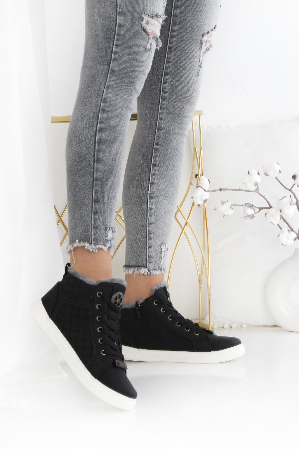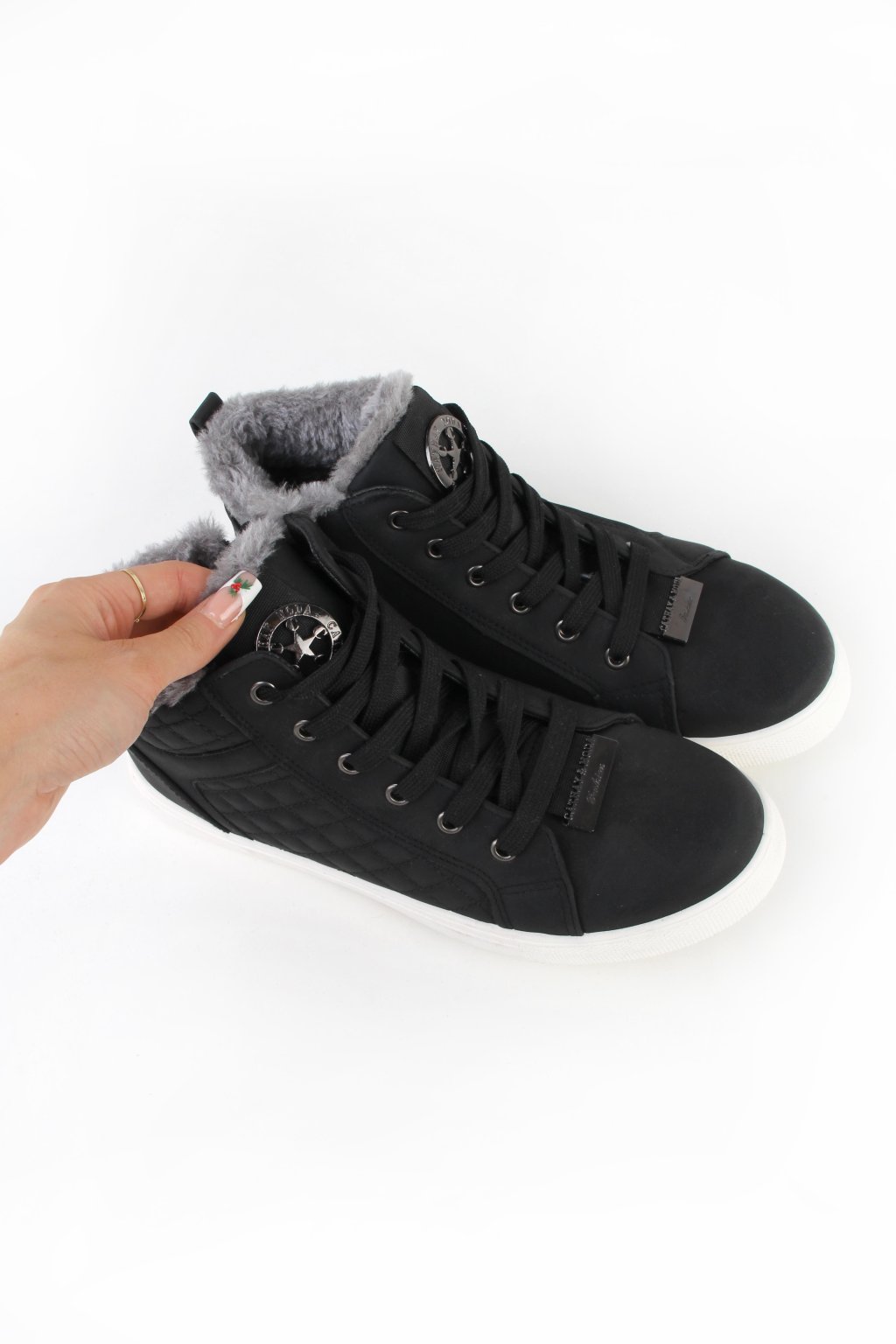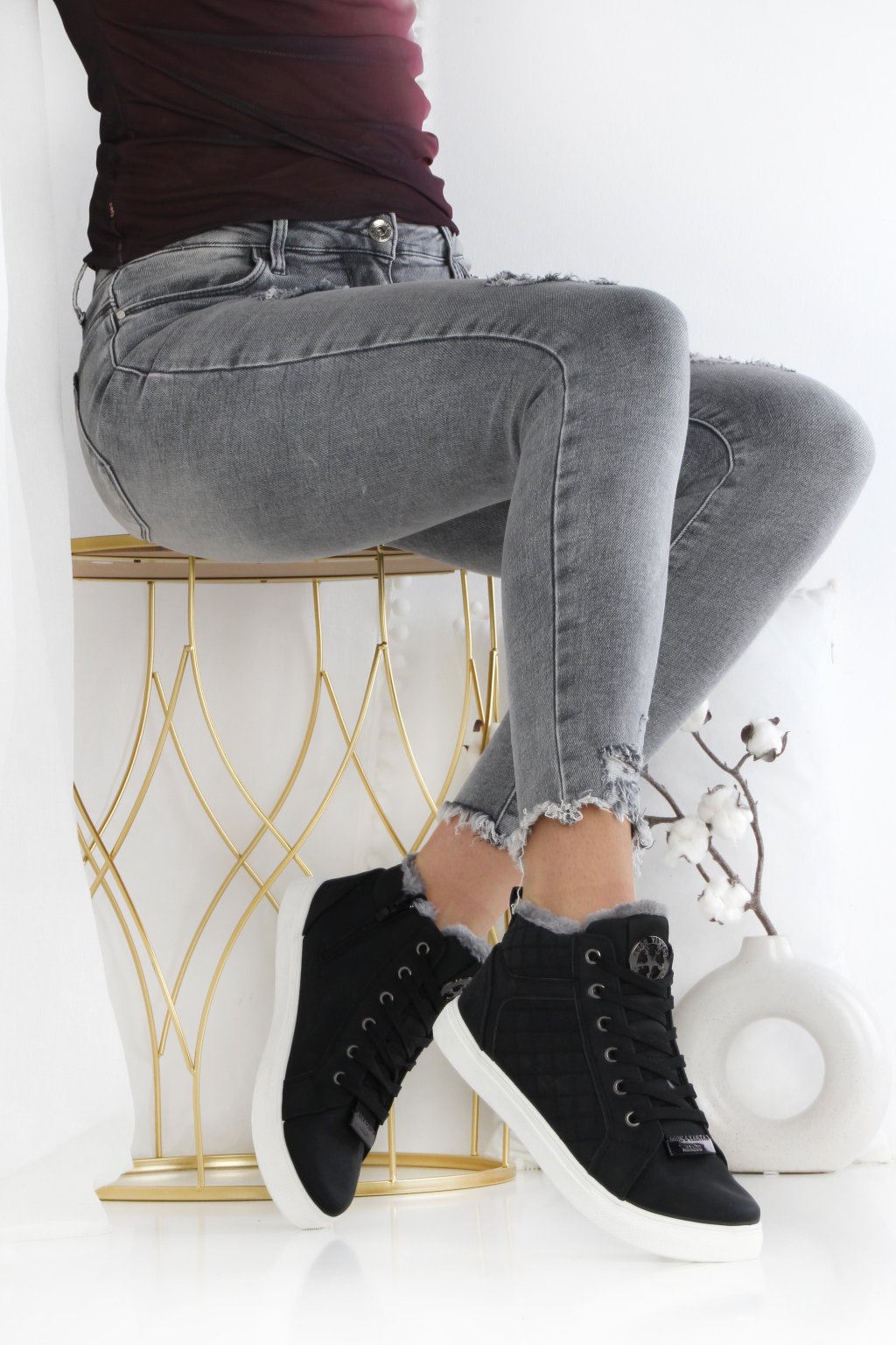 Uvnitř vás čeká měkký, hřejivý kožíšek, který vaše nohy zahřeje i v těch nejchladnějších dnech. Zapínání na zip umožňuje snadné obutí, zatímco šněrování vám poskytne možnost upravit si tenisky přesně podle vašich potřeb. A protože detaily dělají celý look, jazyk boty zdobí elegantní kovová ozdoba, která přidává botám špetku luxusu a originálního vzhledu.