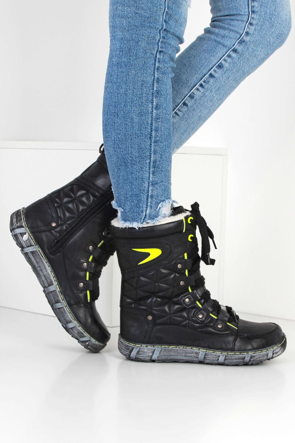 Zimní boty, které vám padnou do oka. Bude to láska nejen na první pohled, ale také na první obutí. Tento model je totiž pohodlný, má hrubší podrážku se vzorkem a boční zip díky kterému můžete na zdlouhavé šněrování zapomenout a boty obouvat jen s jeho pomocí. Vnitřek bot je zateplen včetně stélky hrubým světlým kožíškem a tak se na vás zima nemá šanci dostat. Od země bude chlad izolovat hrubší podrážka a o příjemné teplo v botách se postará kožíšek. Dokonale vypadají boty po designové stránce, mají vkusnou kombinaci barev a moderní prošívání.